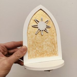 Hi there! My name is Nicole- and this is the CREATIVITY altar that I designed, cut from wood, and left unfinished for your wonderful future painting! It can be used as a working place for a spell, or as a devotional shrine for a certain deity, spirit, or saint. It is made from birch plywood and is ready to accept your creative marks with acrylic paint, paper mâché, or anything you can dream up! Create the perfect altar for yourself with this wooden base.
