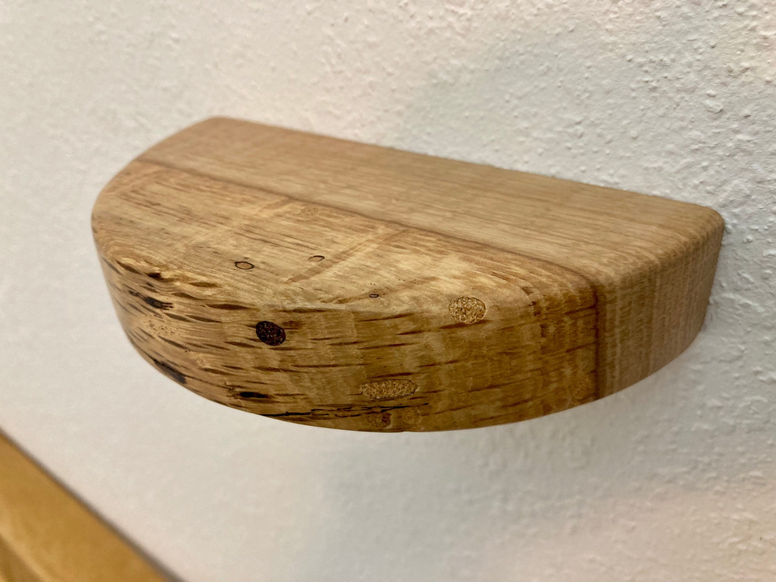 These wooden shelves sit flush on the wall and can be installed in less than 5 minutes and are still very sturdy.