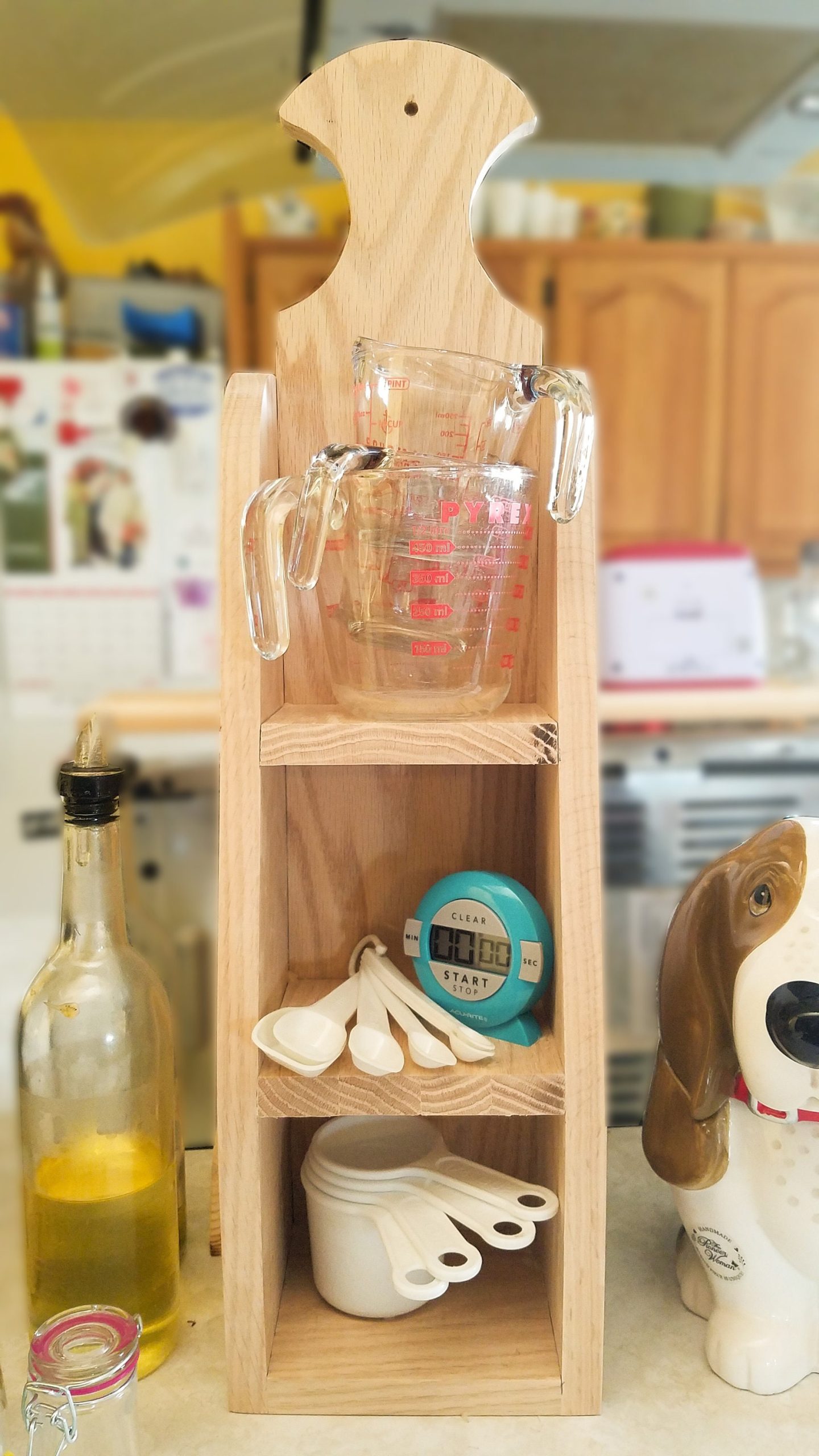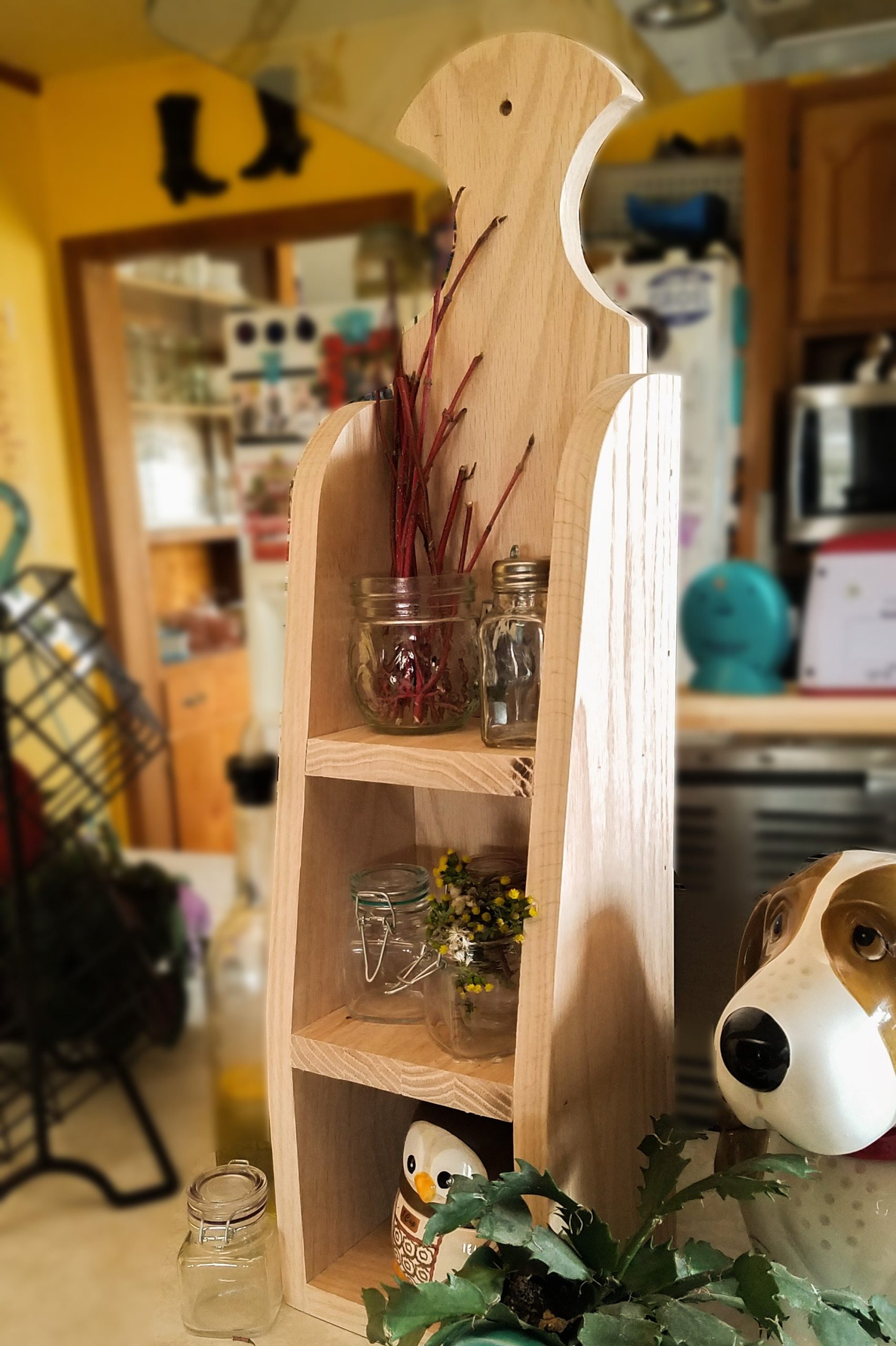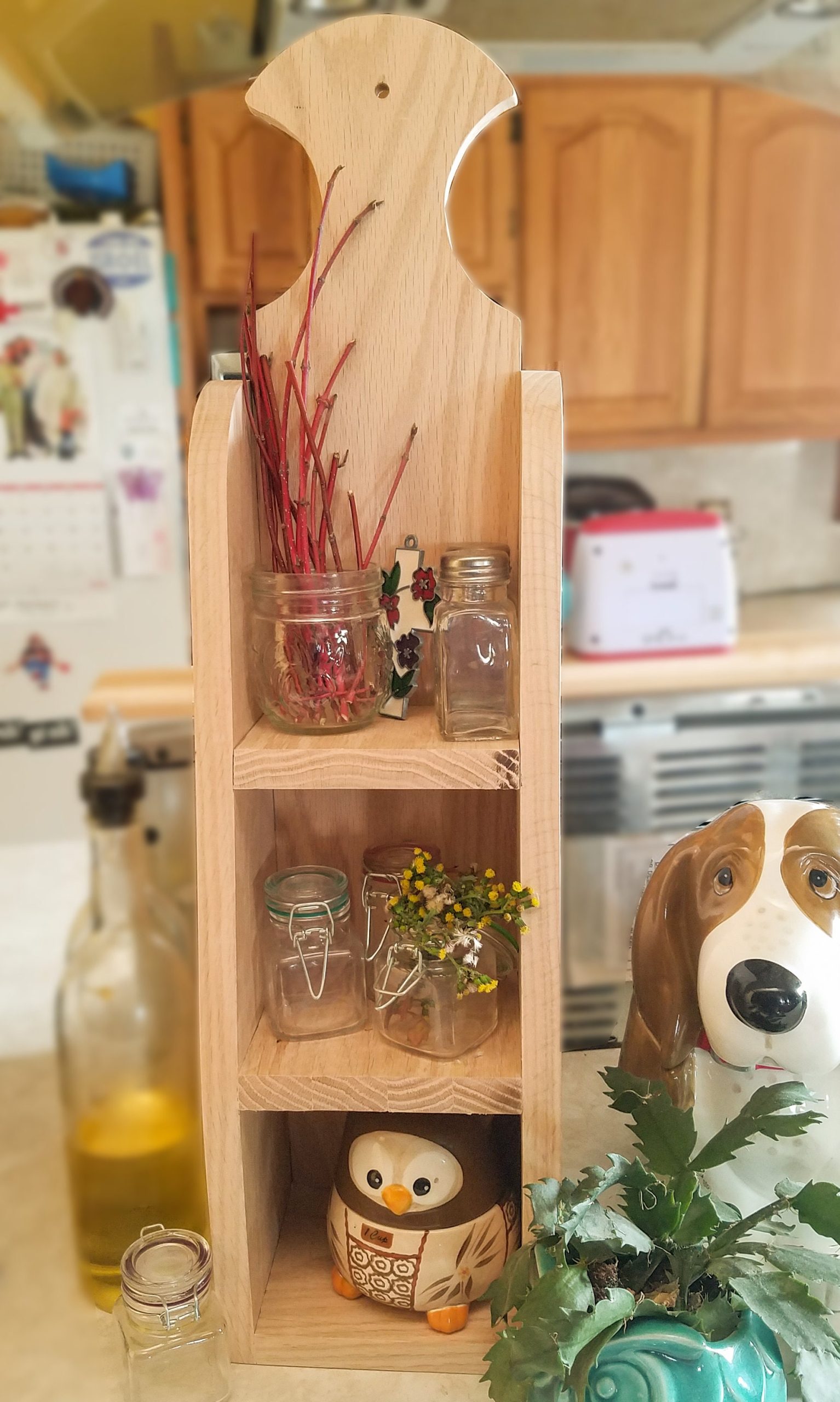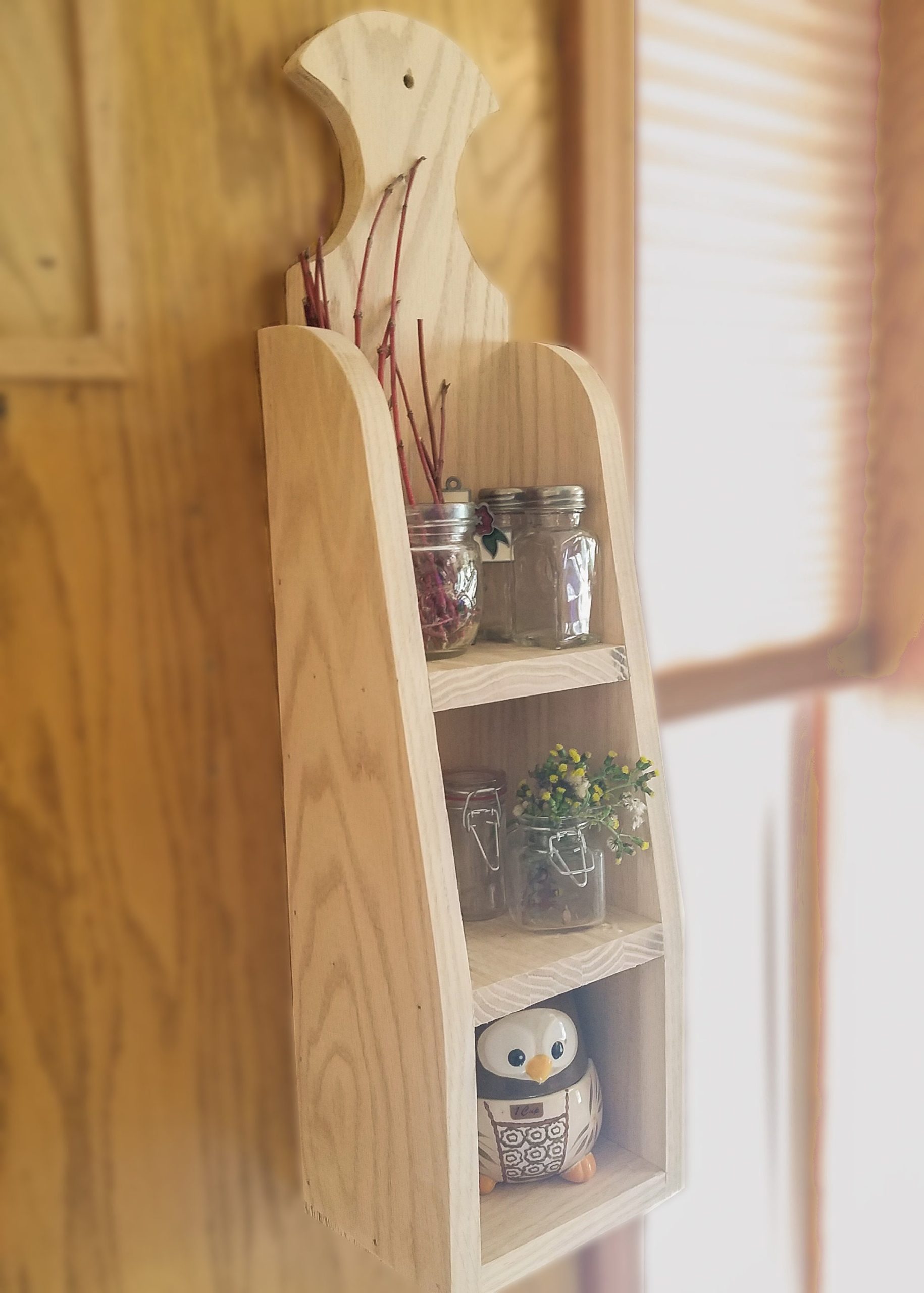 A cute little decorative shelf that can be hung up or sat on a counter. Can be styled for decor or is sturdy enough to handle day to day use. Created on a little farm in the Treasure Valley, each piece is made with love by Jeff, with the help of his wife Julie. Pieces finished to order, available in the colors pictured, or we can leave it ready for you to customize. If you love the natural oak wood, we can add a clear seal as well.