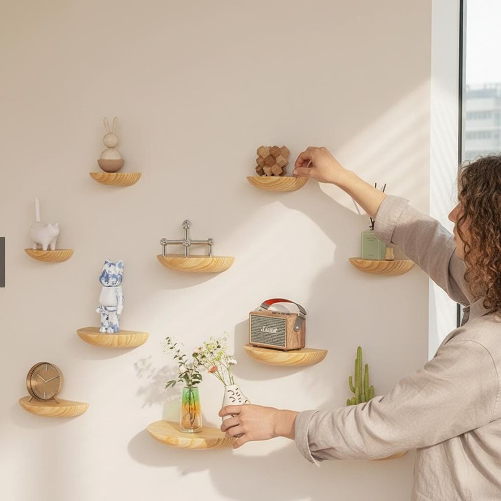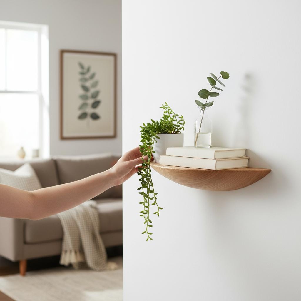 Wooden Floating Wall Shelf Minimalist Decor Small Display Shelf